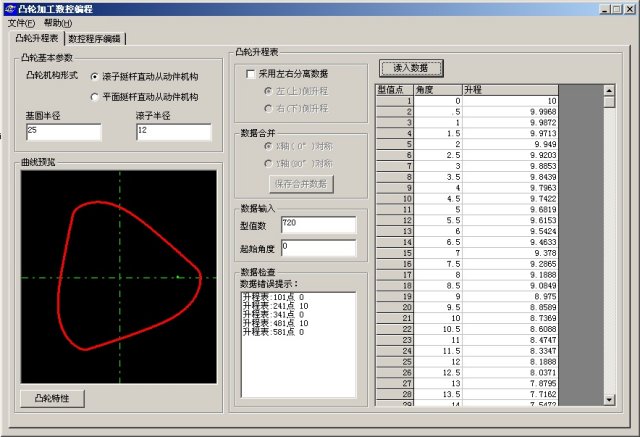 本公司生產(chǎn)的數(shù)控高速曲軸(凸輪軸)銑床采用盤銑刀點跟蹤方式高速銑削各種非圓截面。為精確加工各種汽油發(fā)動機凸輪軸、柴油發(fā)動機凸輪軸、供油泵凸輪軸等,本公司開發(fā)了《凸輪軸加工NC 程序編程系統(tǒng)》軟件。